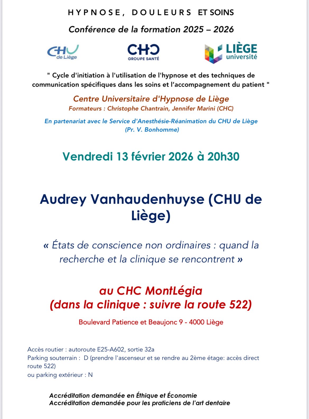 La Dr Audrey Vanhaudenhuyse donnera une conférence sur le thème: « États de conscience non ordinaires : quand la recherche et la clinique se rencontrent« .